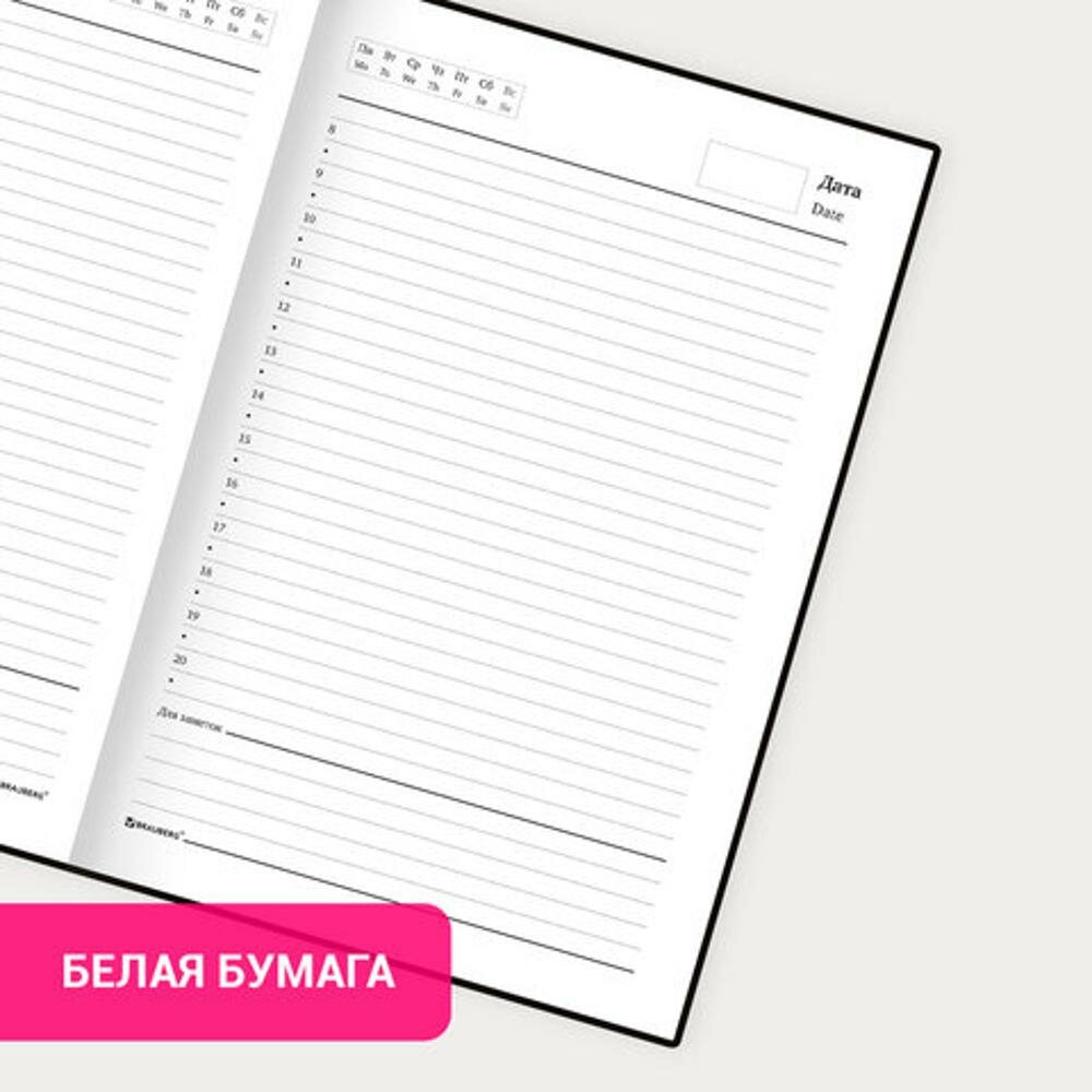 Ежедневник Brauberg недатированный, А5, 145*215 мм, 160 л, обложка бумвинил, черный (126540)