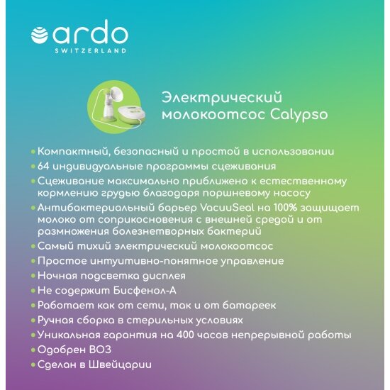 Молокоотсос электрический ARDO Calypso, 64 режима сцеживания, индивидуальная настройка интересное: