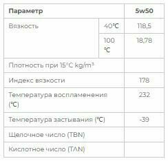 | Класс вязкости SAE | 5W-50 |
