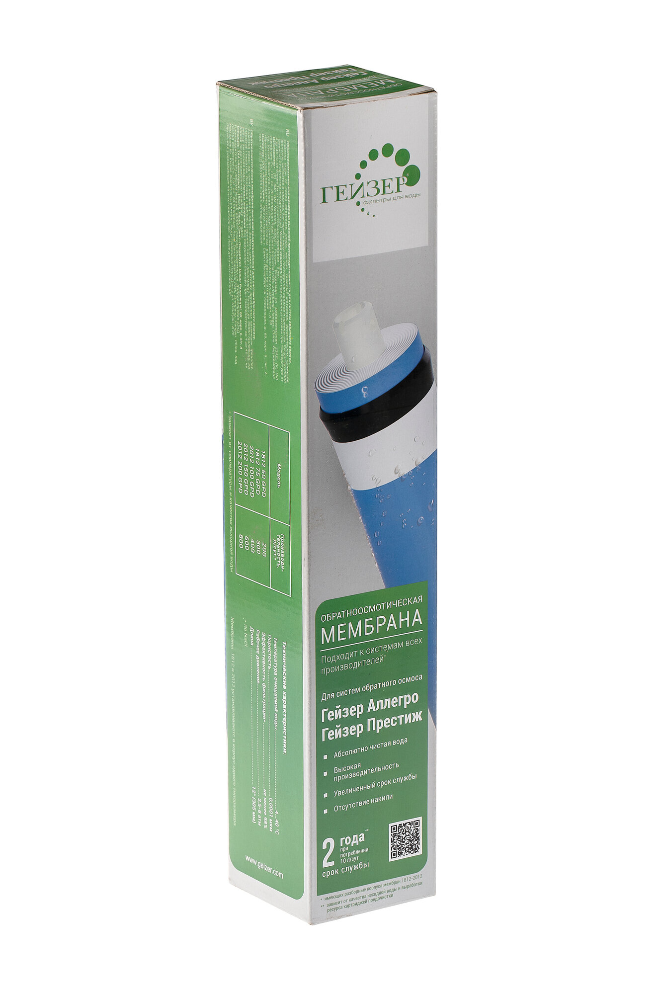 Купить Мембрана обратного осмоса Гейзер 2012-150, используется для ультратонкой очистки воды, удаления бактерий и вирусов размером до 0,0001 мкм, 28452