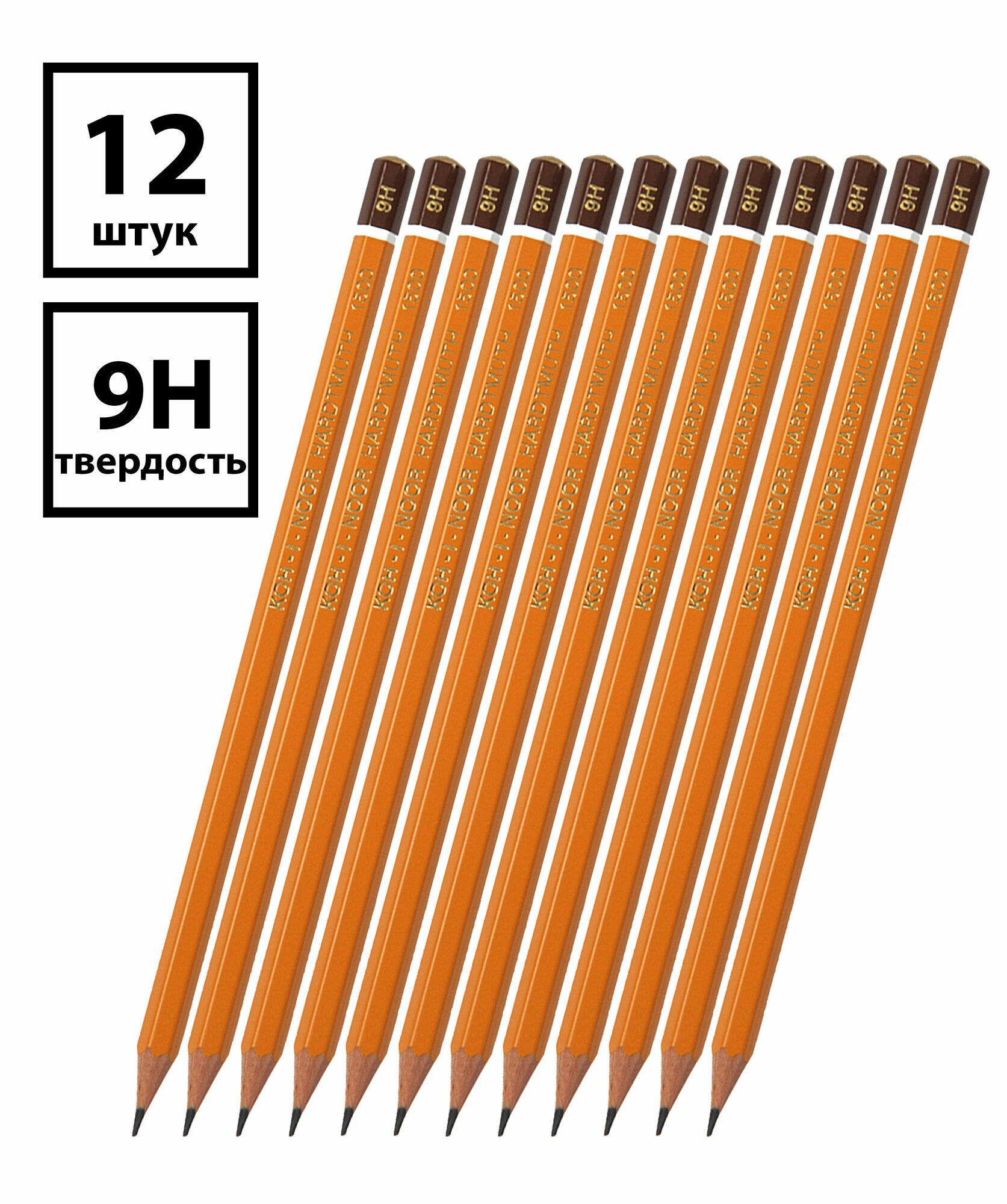 Карандаш чернографитный KOH-I-NOOR 1500, 1 шт., 9H, корпус желтый, заточенный, 150009H01170 - 12 шт.