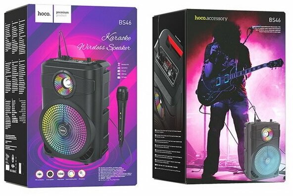 Купить Портативная колонка BS46, 10 Вт, 1800 мАч, BT 5.0, microSD, USB, AUX, FM, микрофон, черная