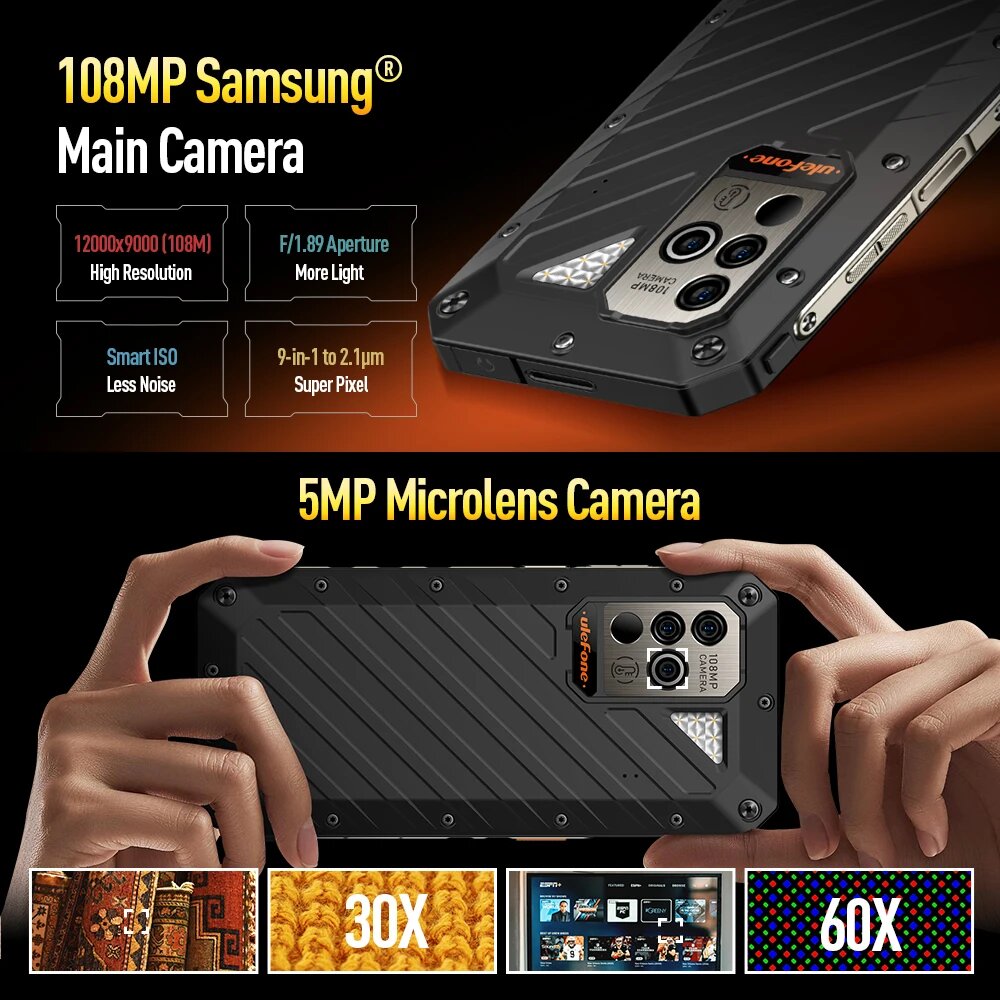 Ulefone Power Armor 19,17 ГБ ОЗУ 256 ГБ ПЗУ, камера 108 МП, Helio G99, 6,58 дюйма, 66 Вт, 9600 мАч, сотовая связь 4G, Android 12, глобальная версия