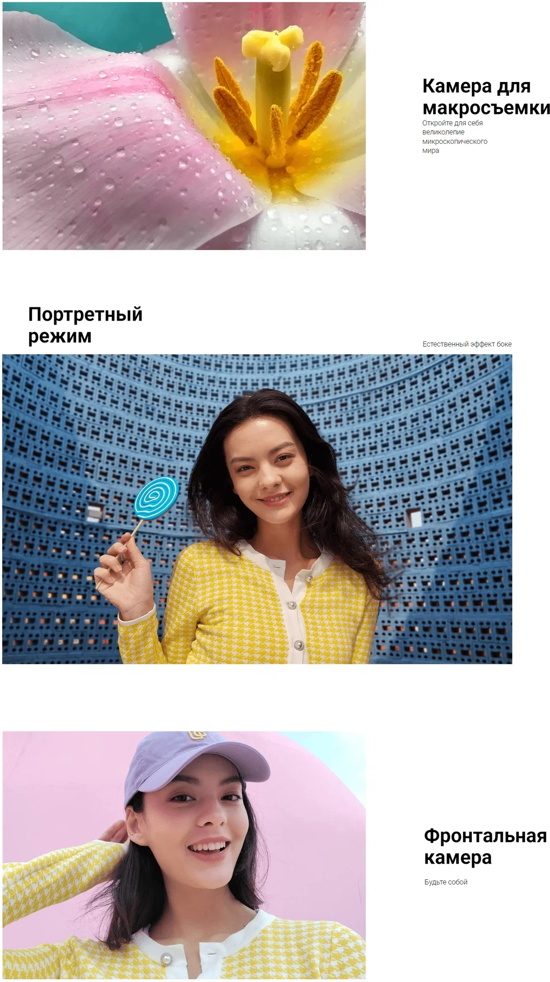 | Характеристики основной камеры 3 | макро, 2 МП, f/2.4 |