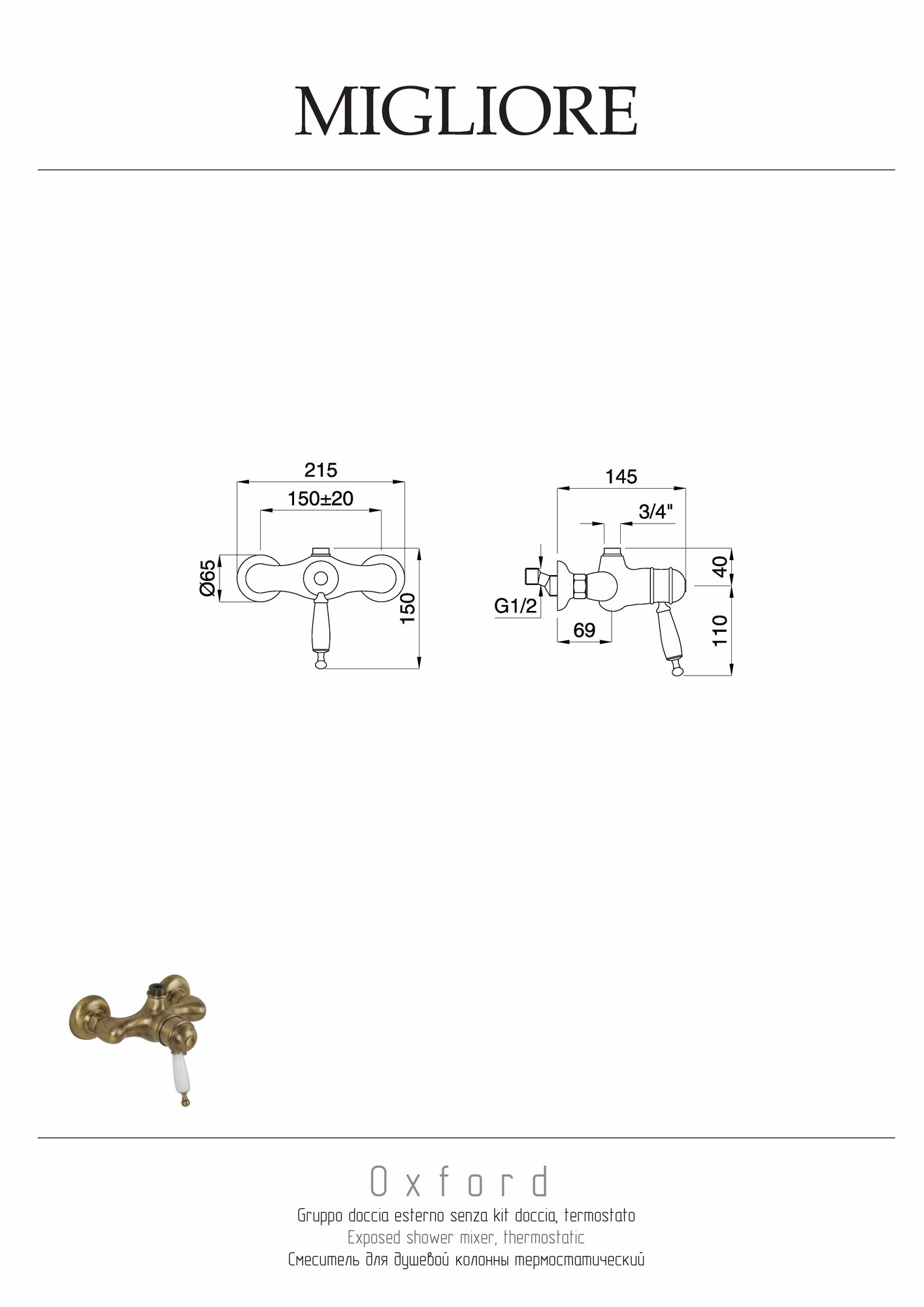 Migliore Oxford ML. OXF-6337. BI. BR Смеситель для душевой колонны, термостат внешний, выход М3/4", ручка белая", бронза