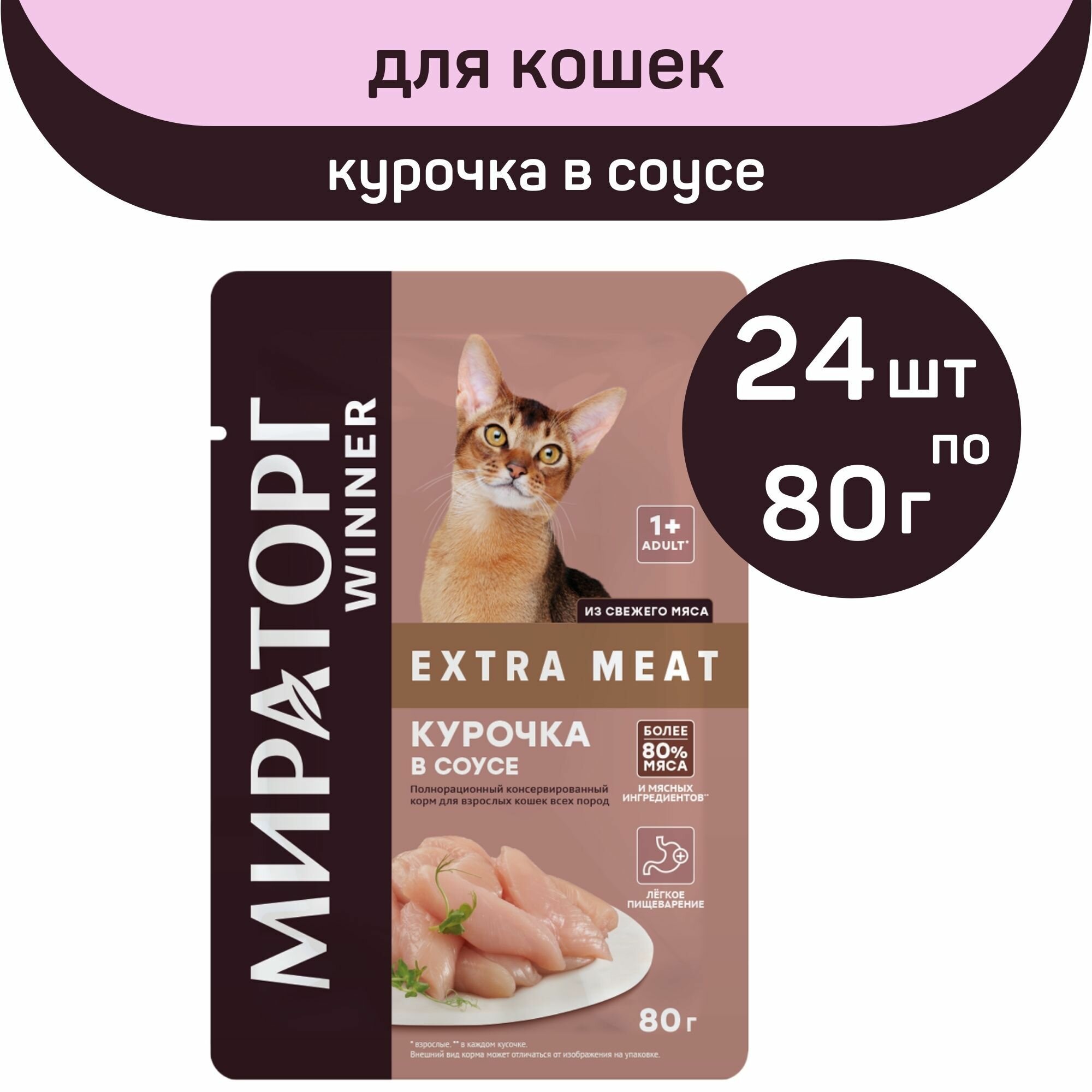 Влажный корм Мираторг Extra Meat для кошек всех пород, c курицей в соусе, 80г х 24шт