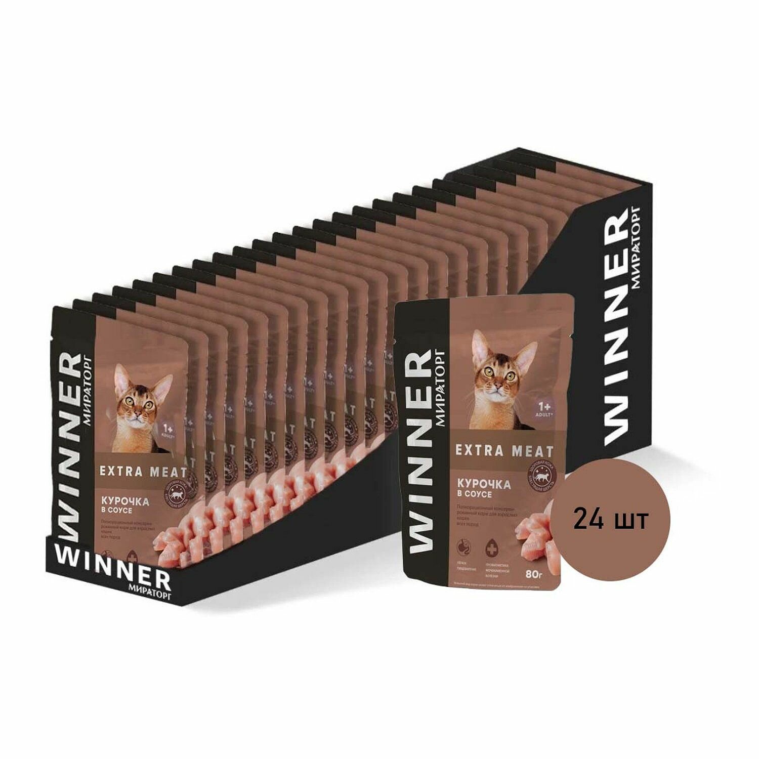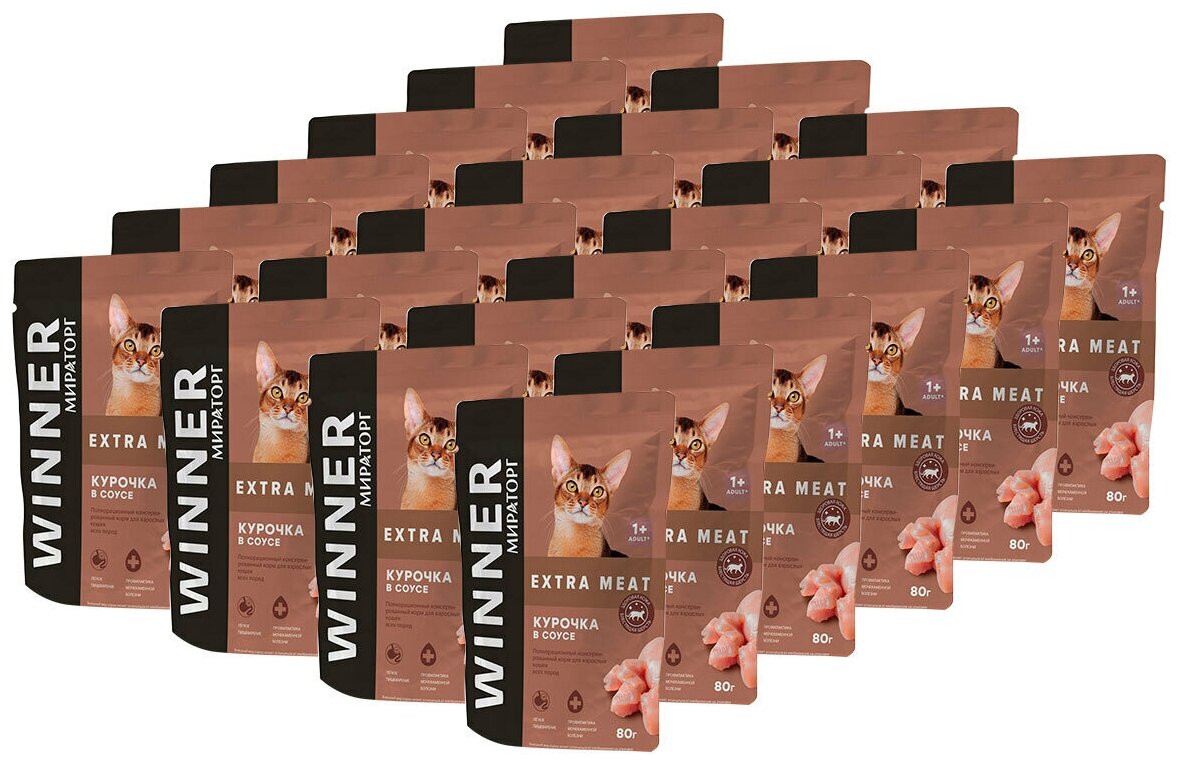 WINNER Extra Meat Корм пауч полнорационный для взрослых кошек всех пород с Курочкой в соусе 80г (24шт)