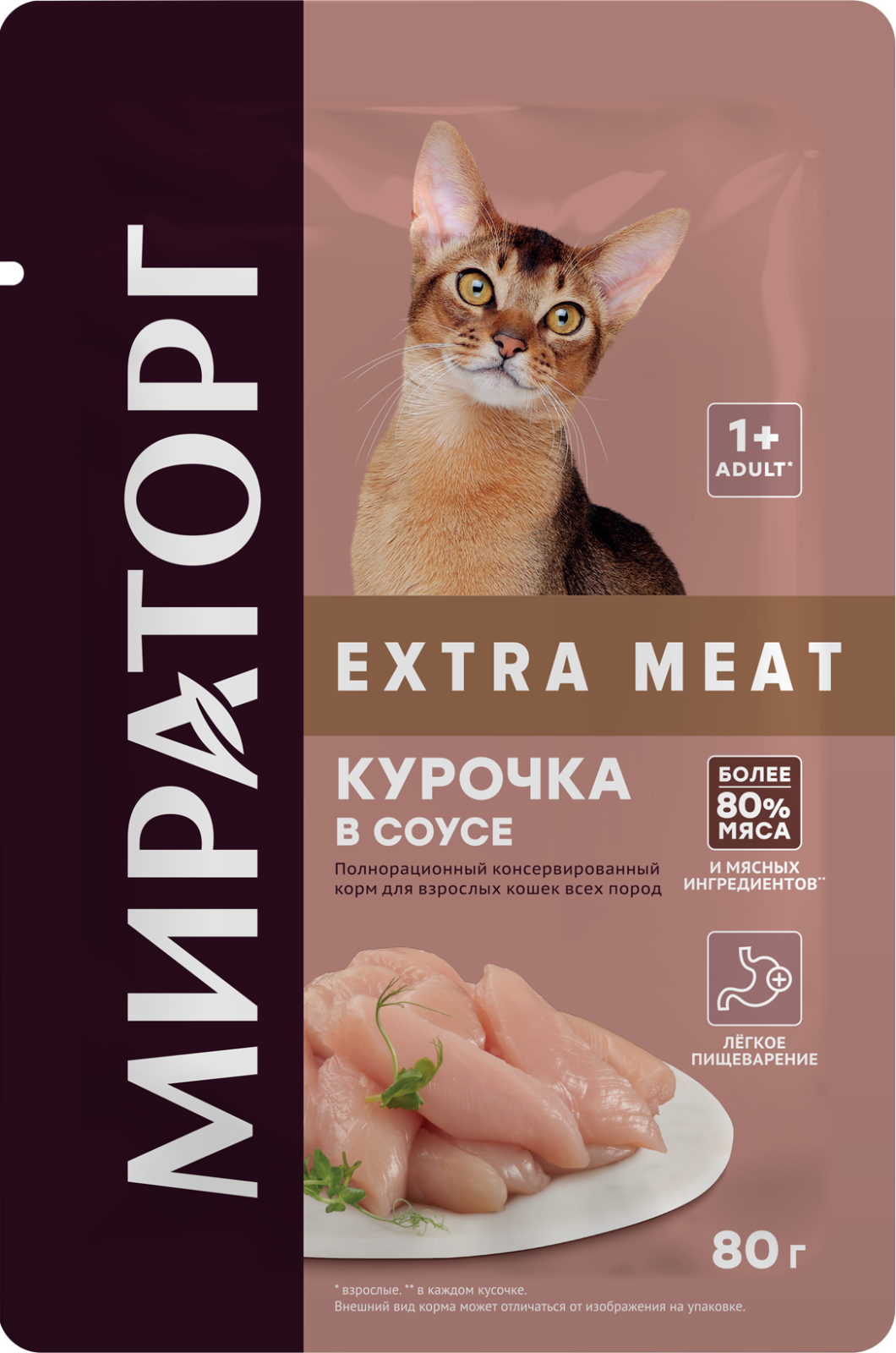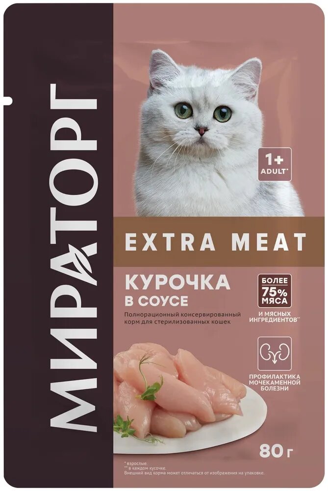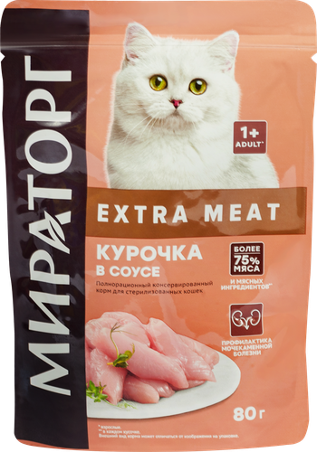 Купить Мираторг 80гр для взрослых кошек с курицей в соусе Extra Meat