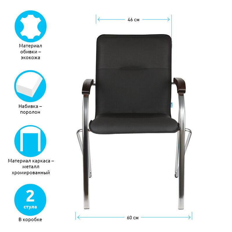 Купить Стул Helmi HL-F03 "Самба", каркас металл хром, экокожа, черный, орех BOX2, комплект из 2 шт.