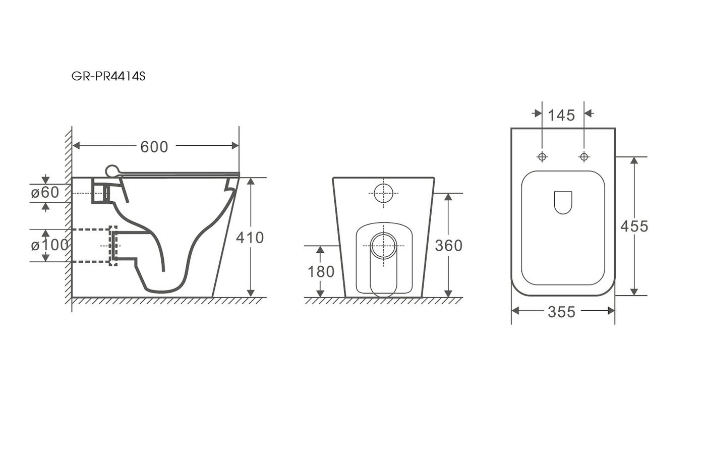 Унитаз GR-PR4414S (600*355*410) белый приставной безободковый с тонкой крышкой, 1 место