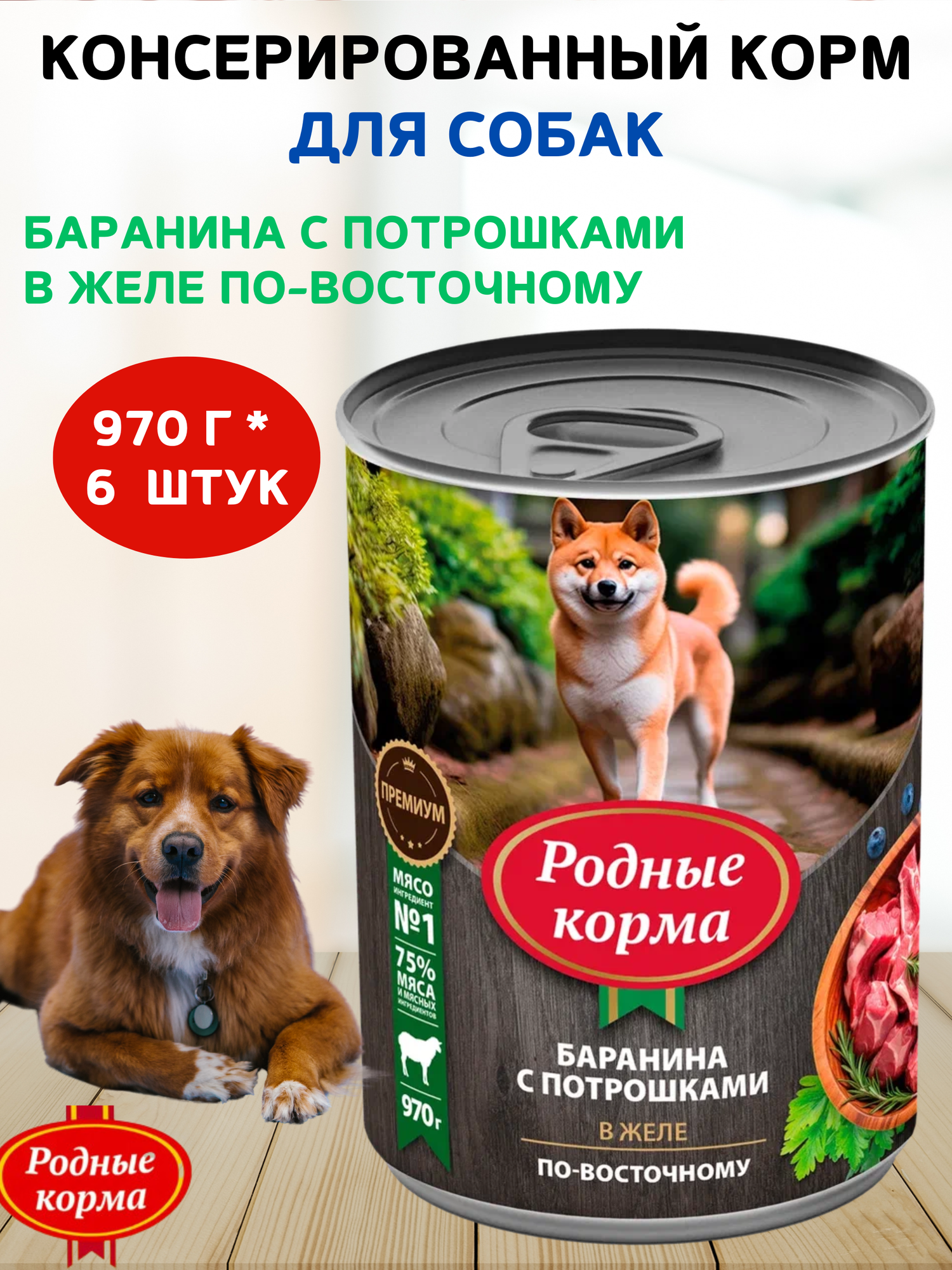 Купить Родные Корма влажный корм для взрослых собак, баранина с потрошками в желе по-восточному, в консервах - 970 г х 6 шт