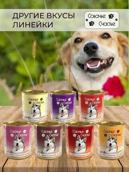 Консервированный корм для собак, Собачье Счастье, птица с потрошками в желе, 750 г, 1 шт.
