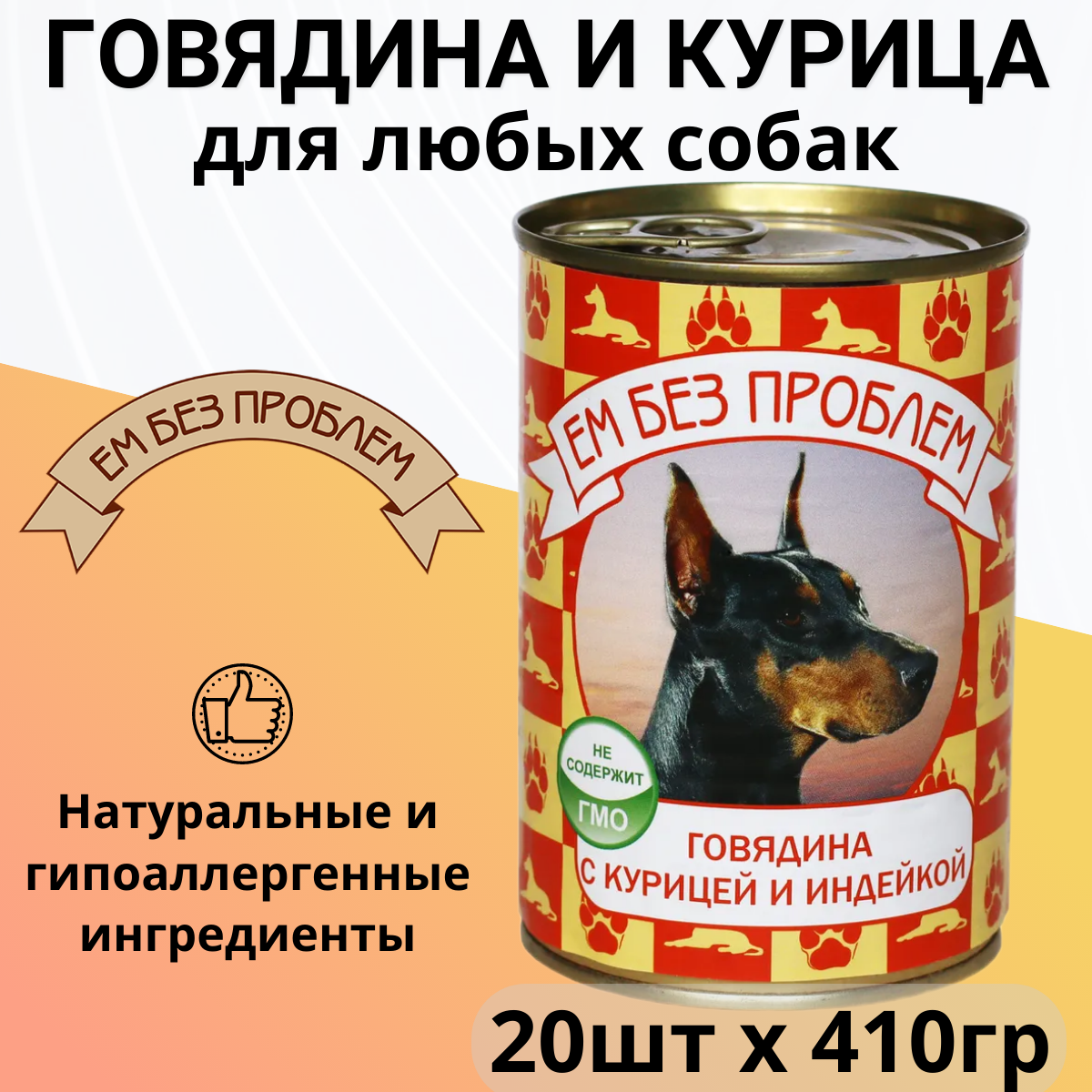 ем без проблем кон.для собак говядина с курицей и индейкой 410г