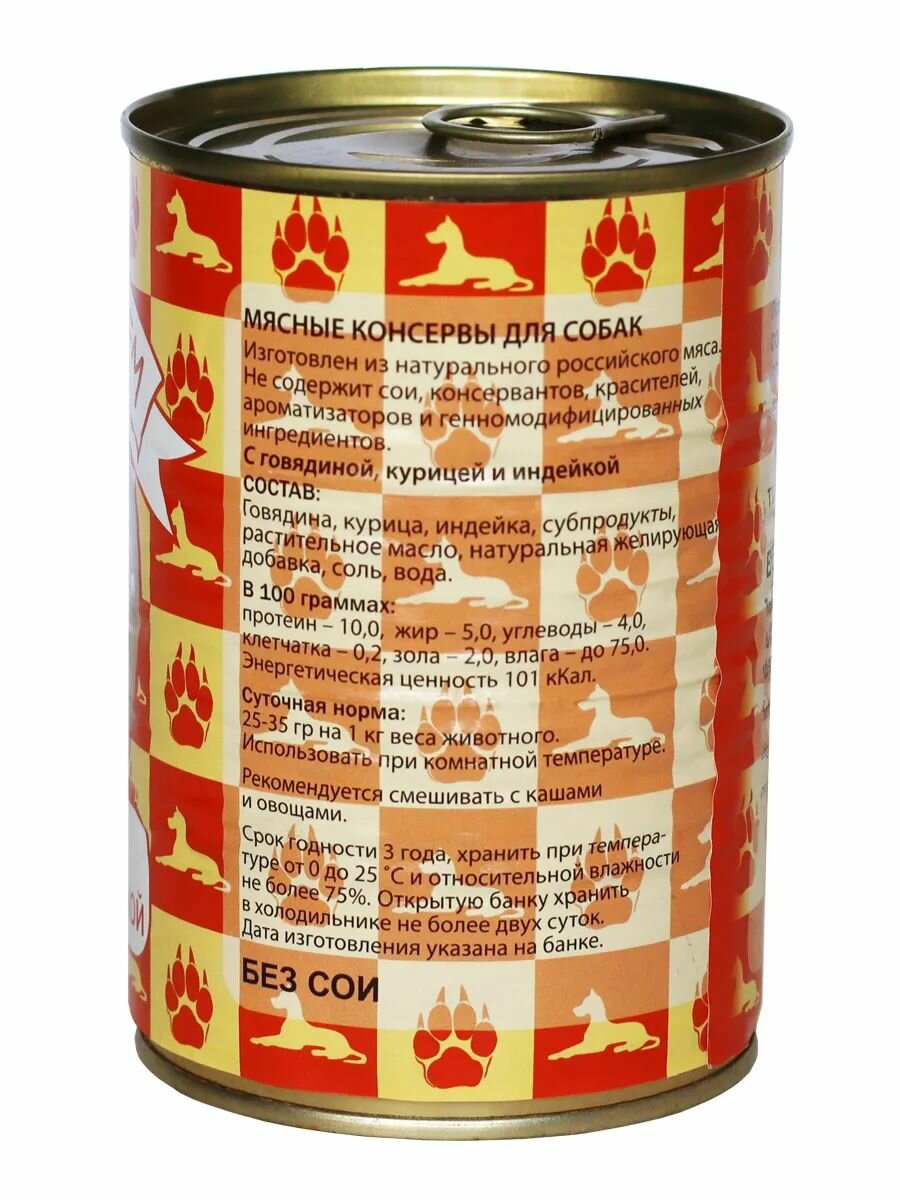 Купить консервы для собак Говядина с курицей и индейкой 410г 20шт