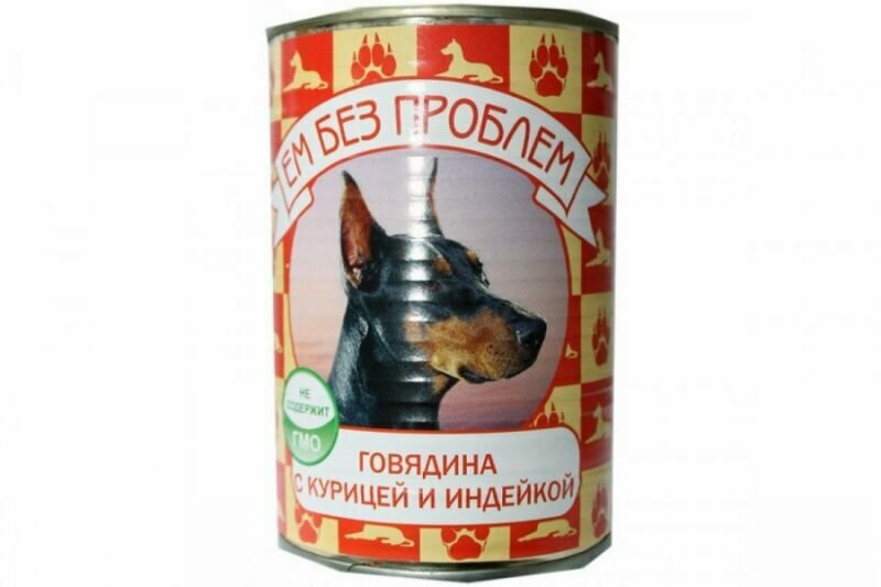 Ем без проблем консервы для собак Говядина с курицей и индейкой,410 г,2 шт