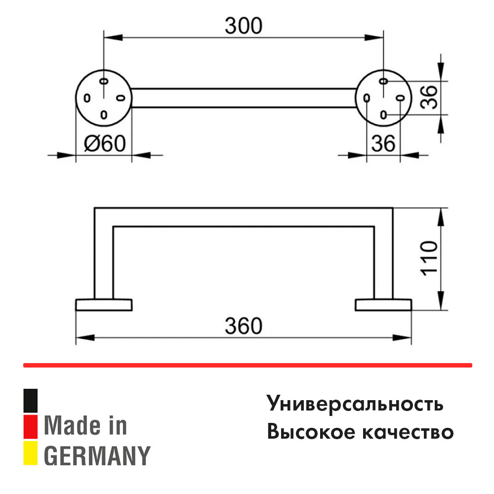 Полотенцедержатель 36 см KEUCO Edition 90 19021010000