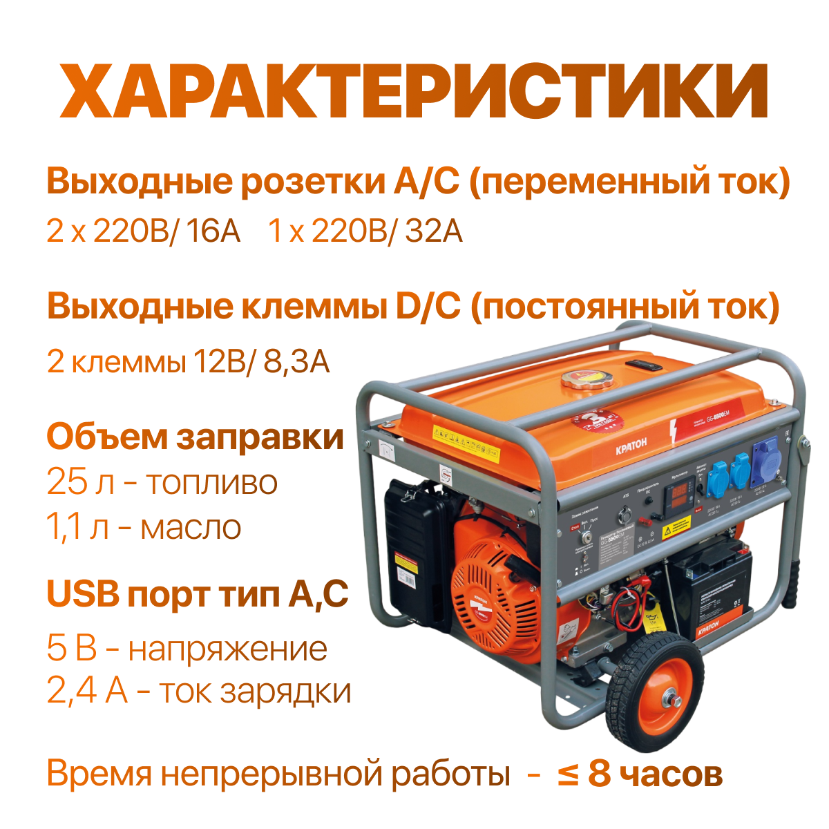 Генератор бензиновый Кратон GG-6500EM, 3 08 01 038 интересное: