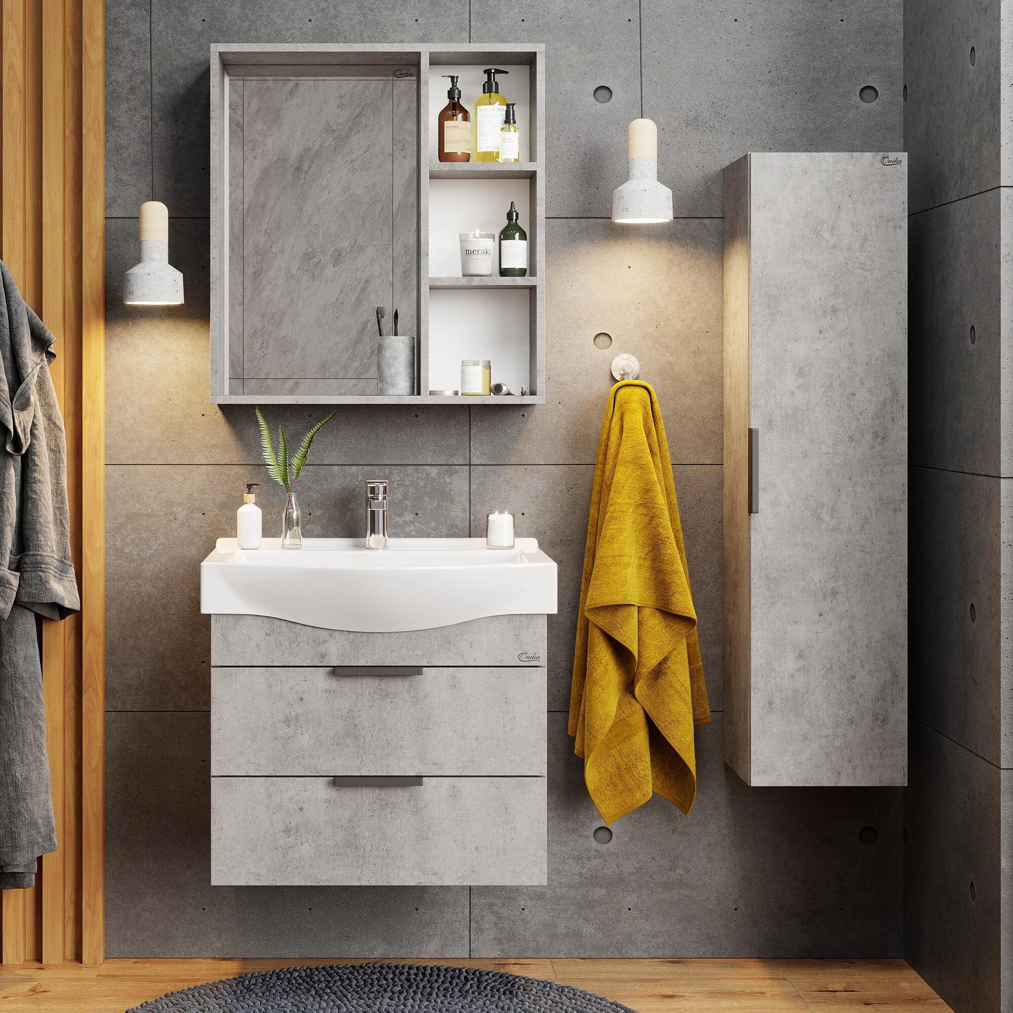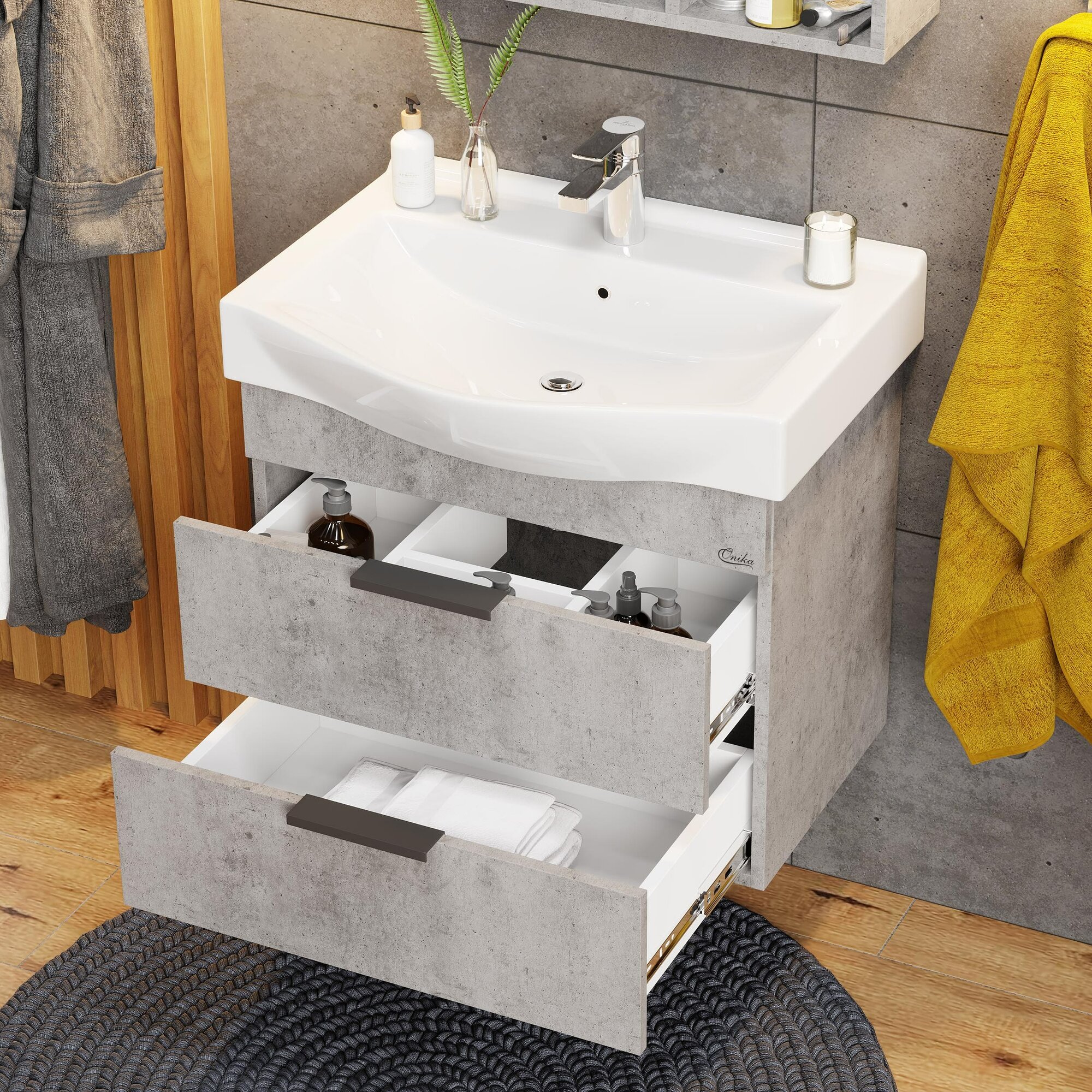 Тумба под раковину в ванную Onika Девис 65 подвесная, бетон чикаго (ум. Беверли 65)