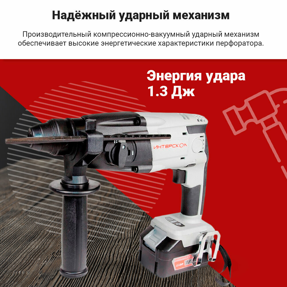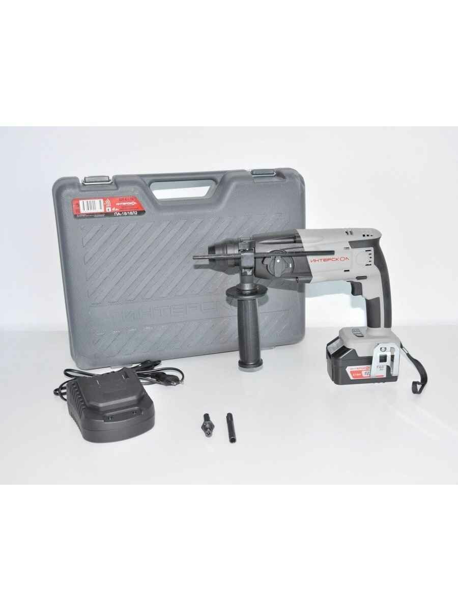 Перфоратор работа от аккумулятора, Интерскол, П-18/18Л2, SDS-Plus, 18 Вт, 1.3 Дж, 1 режим, Li-Ion, с кейсом, 4 А.ч