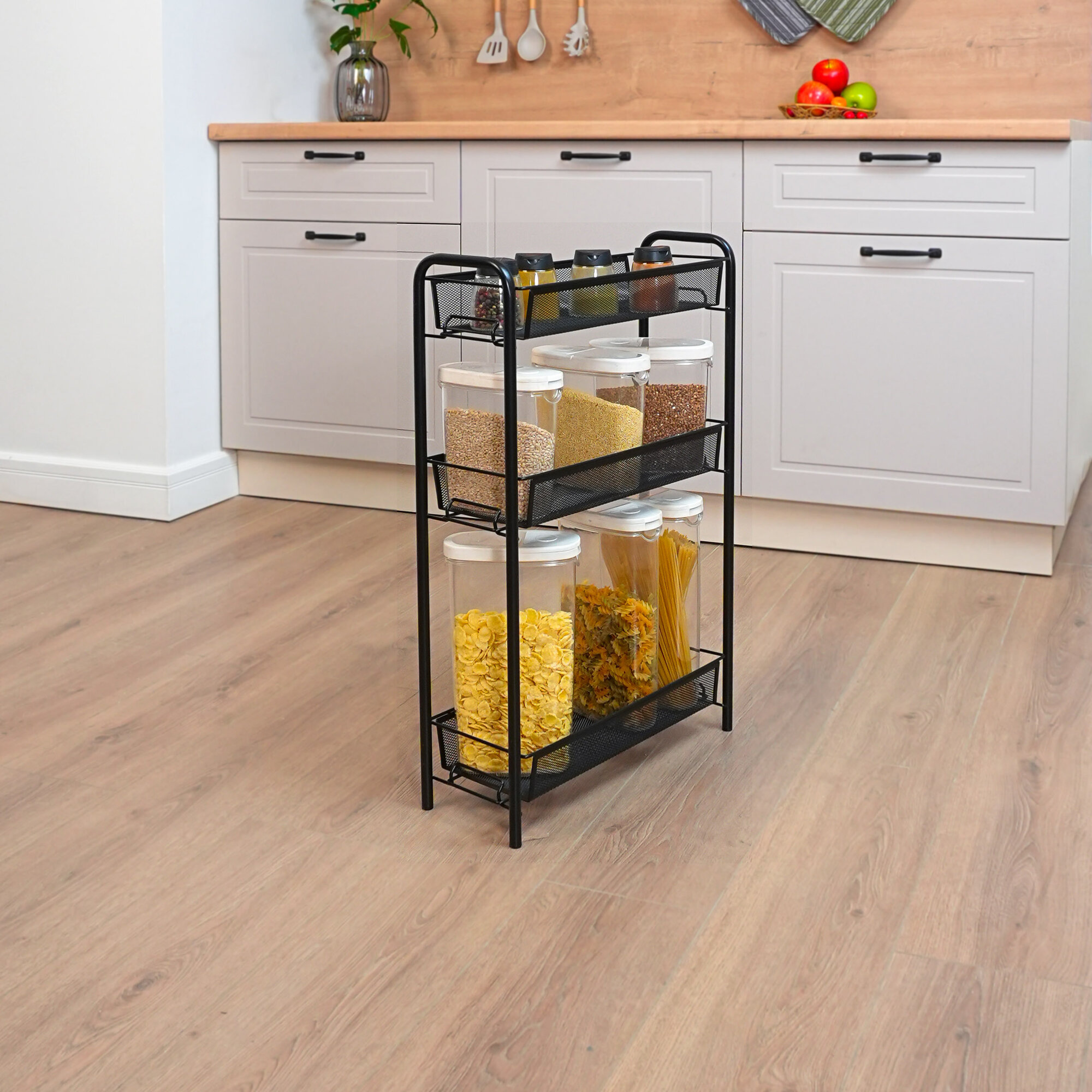 | Отзыв: | Купили сначало одну.Поставили в туалет для гигиенический средств. Потом решили,что на кухне тоже такая не помешает. В ней хорошо разместились моющие средства для посудомойки,наборы губок,тряпочек. А на верхний ярус расставили яркие баночки с конфетами, драже,орехи. Удобно, функционально,дёшево и сердито)) Для маленькой кухни то что надо. |