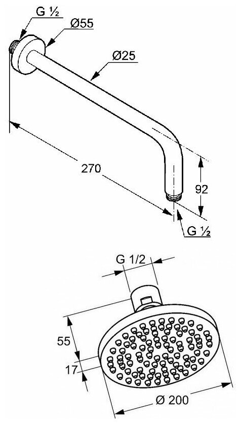 | Форма верхнего душа | круглая |