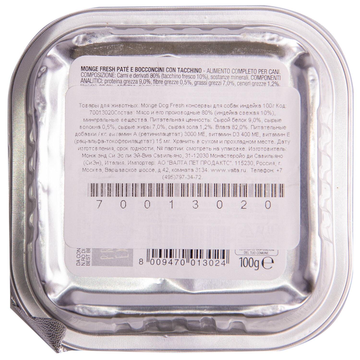 Корм влажный Monge Dog Fresh для собак, паштет из индейки, 100 г