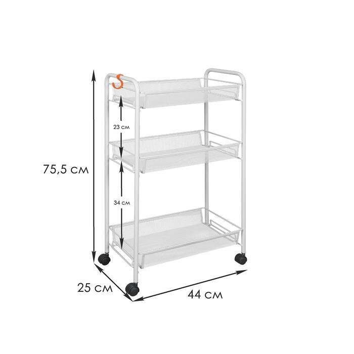 Купить Этажерка 'Ладья 2К', 3 яруса, 44x25x75,5 см, на колёсах, цвет белый