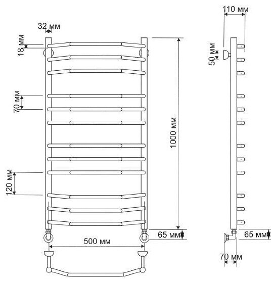 Полотенцесушитель Электрический Тругор Пэк сп 5 П 60х50 черный ВГП