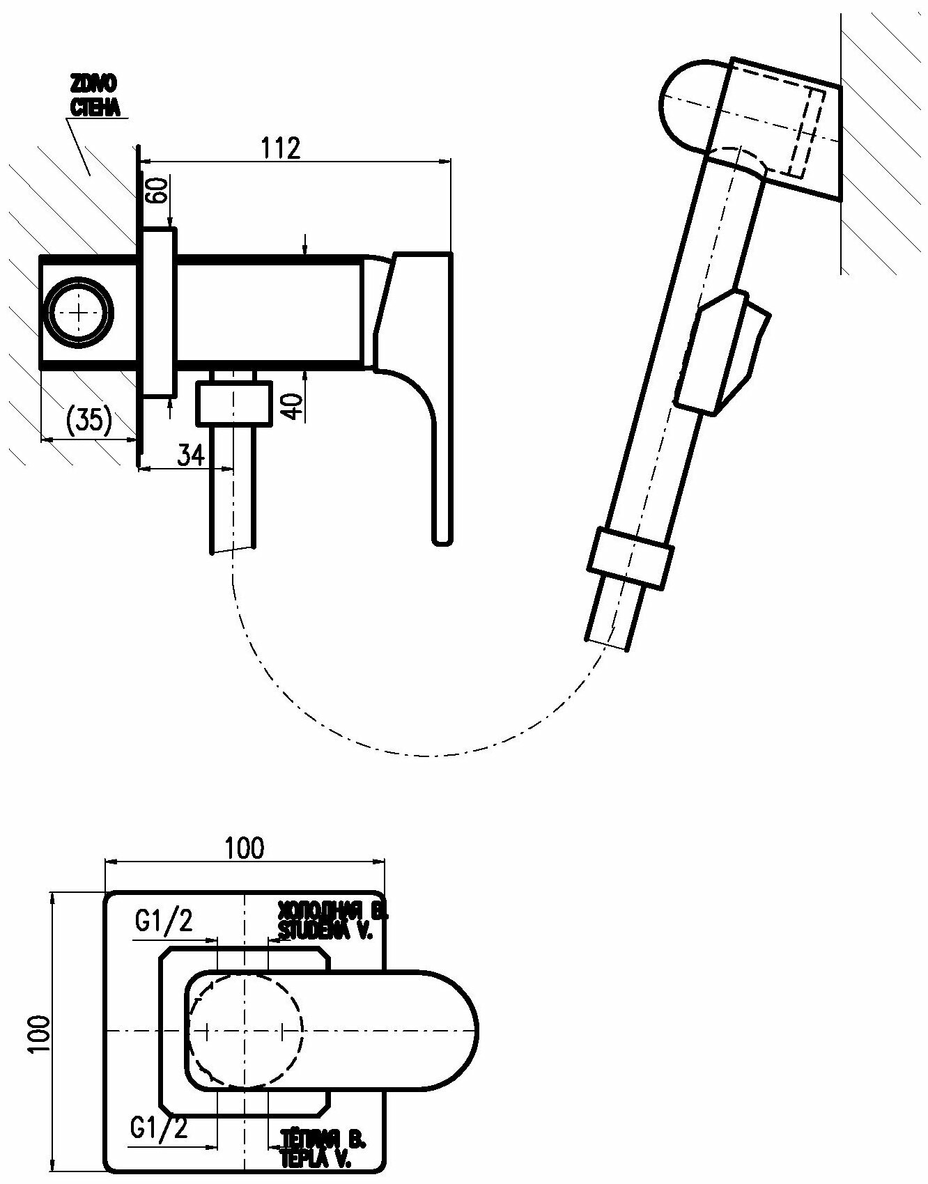 Смеситель RAV Slezаk Yukon для биде, включая тело скрытого монтажа, держатель пласт, душевой лейкой с нажимным механизмом пласт.