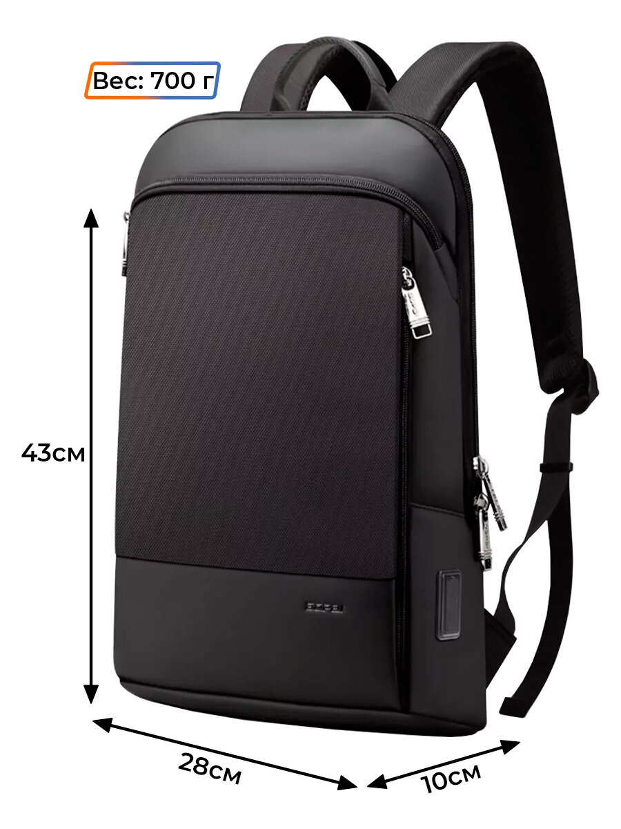 Рюкзак городской дорожный Bopai Business небольшой 12л для ноутбука 15.6", тканевый, влагостойкий, молодежный, с USB портом, черный