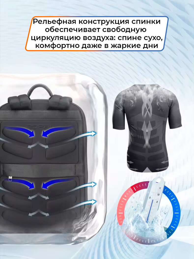 СохранитьРюкзак мужской/женский городской Bopai Business 12л для ноутбука 15.6" водонепроницаемый, с USB зарядкой, черный интересное: