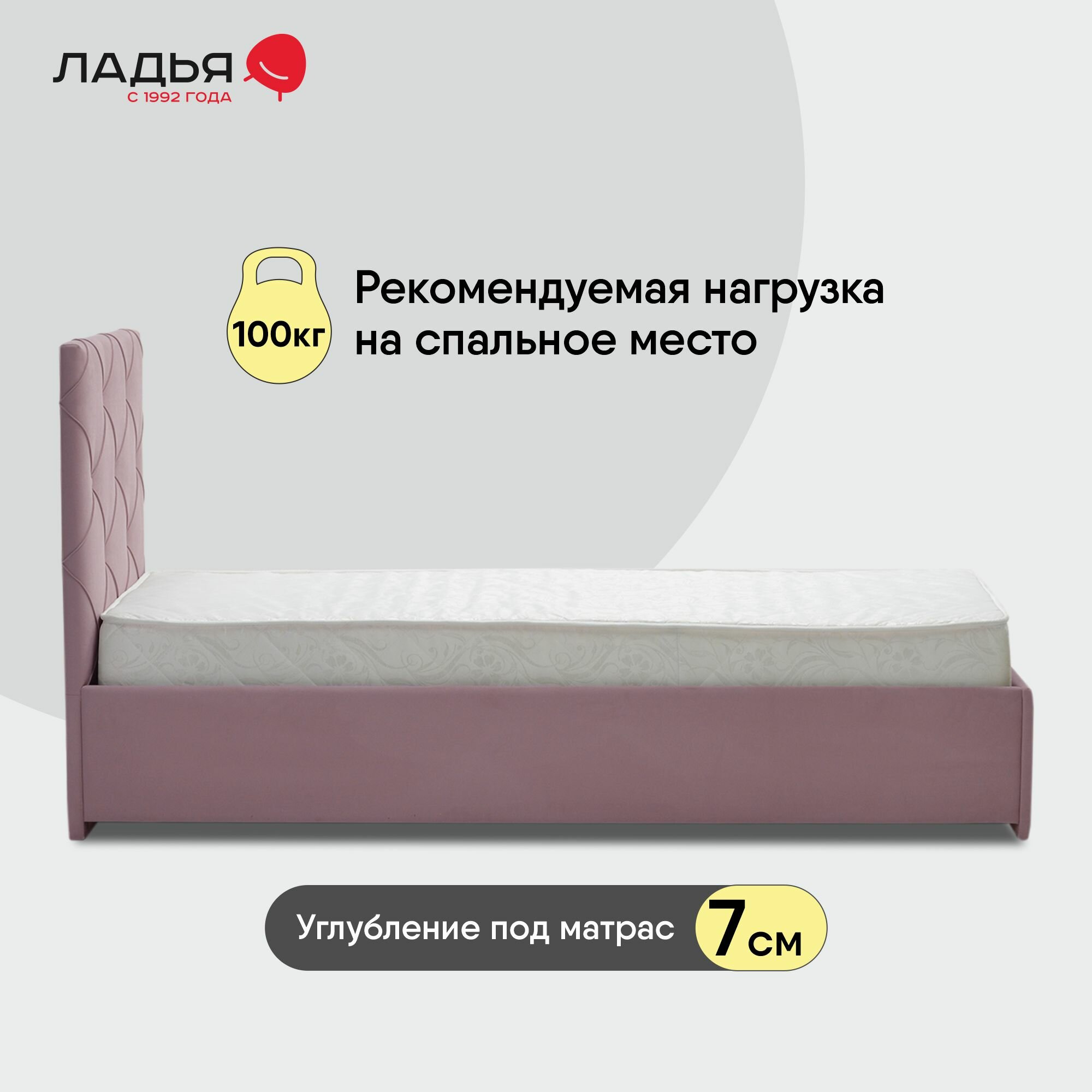 Односпальная кровать Артэ 90х200, с мягким изголовьем для дома и спальни, Ладья, ортопедическое основание, Aloba Baltic
