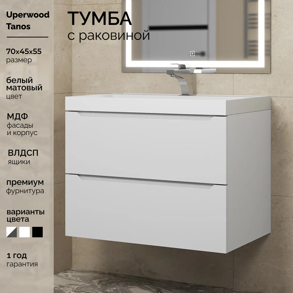 Тумба с раковиной для ванной Uperwood Tanos 70 см, подвесная, белая интересное: