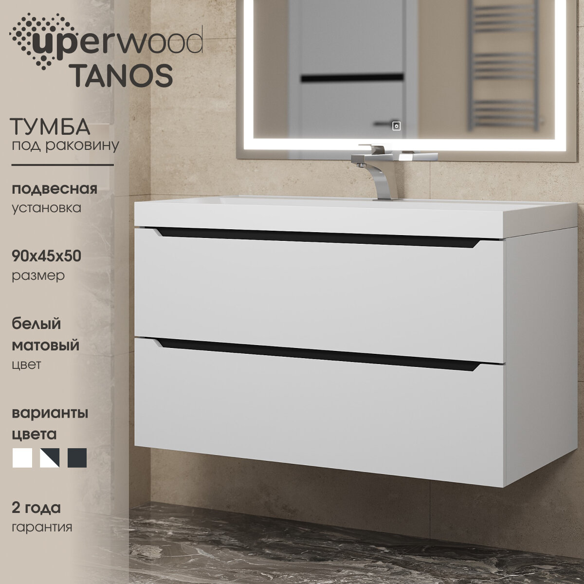 Тумба под раковину для ванной подвесная Uperwood Tanos 90 см, белая/графит интересное: