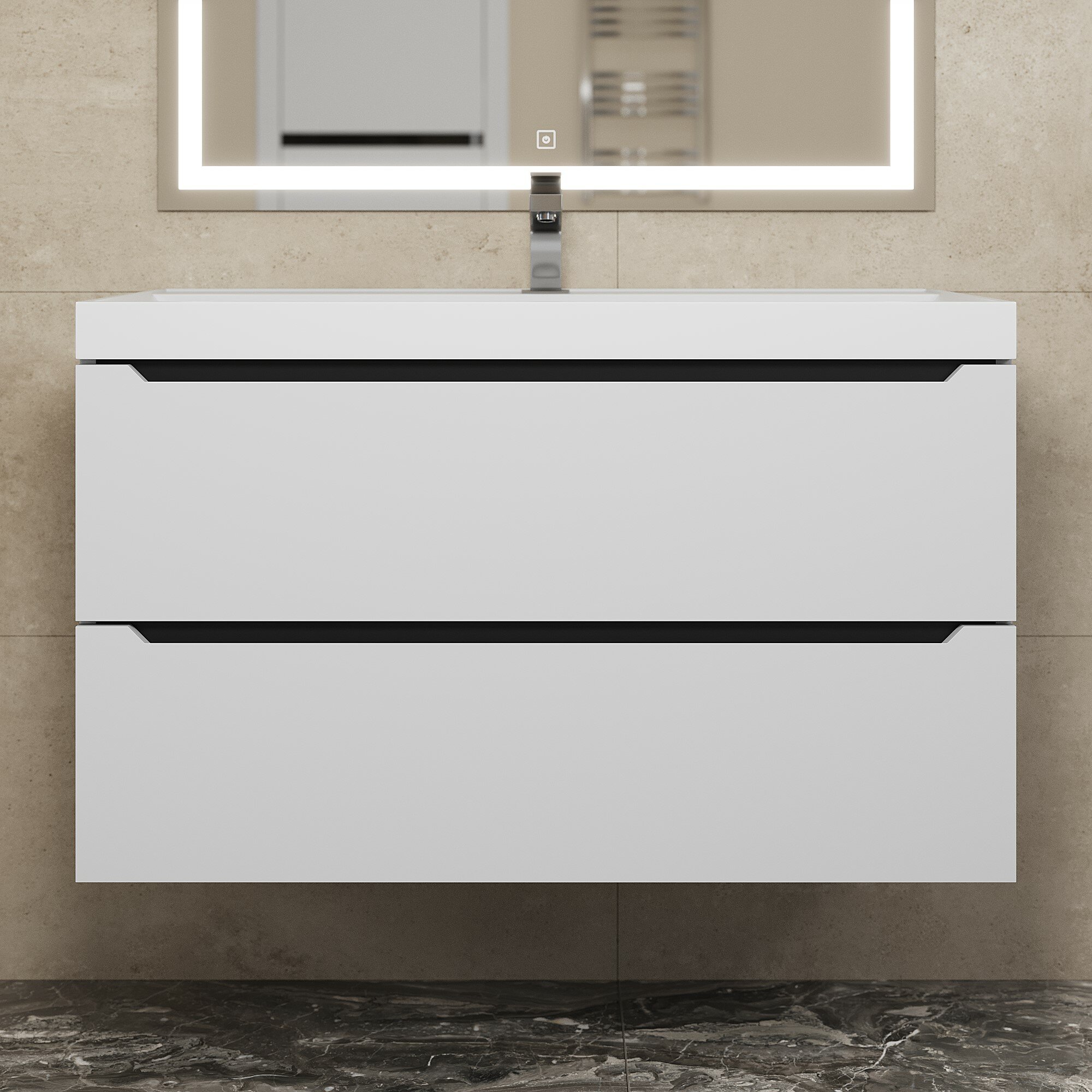 Тумба под раковину для ванной комнаты Uperwood Tanos подвесная 90 см, белая/графит
