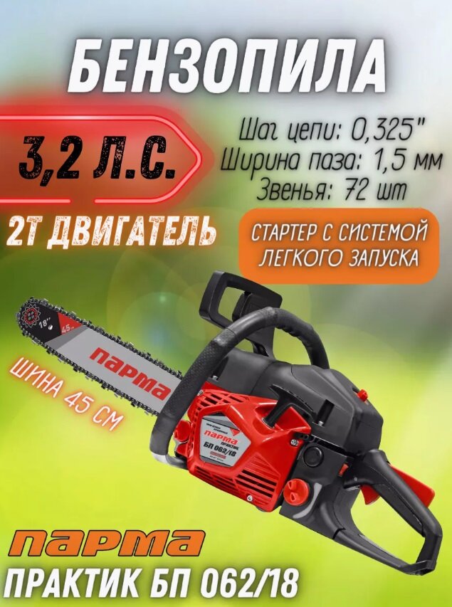 Бензопила Парма Практик БП 062/18, 18", 2400Вт, 3.2 л.с. 02.019.00011