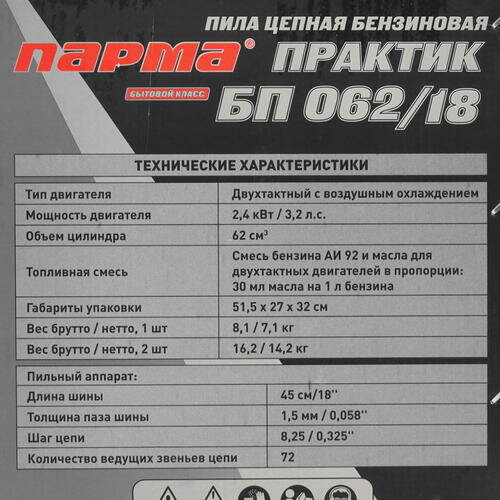 Пила цепная бензиновая Парма Практик БП 062/18