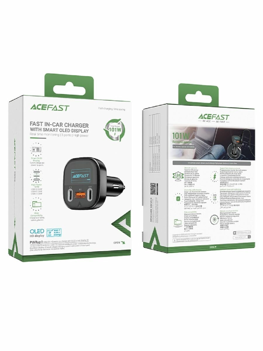 Автомобильное зарядное устройство Acefast B5 101W 2 x USB-C + USB-A Car Charger с OLED дисплеем (AF-B5-BK)