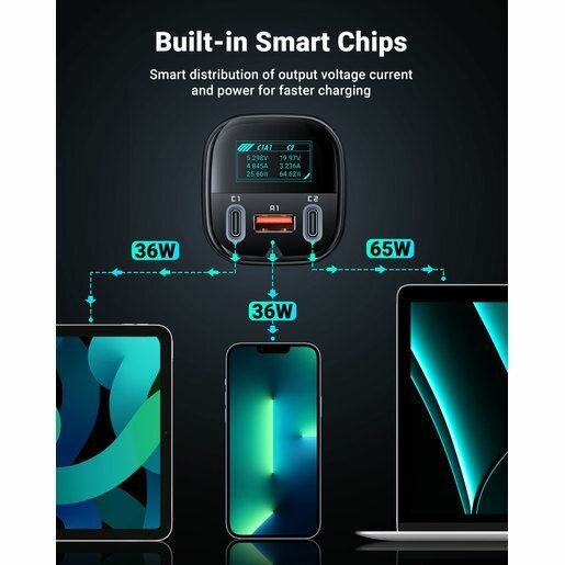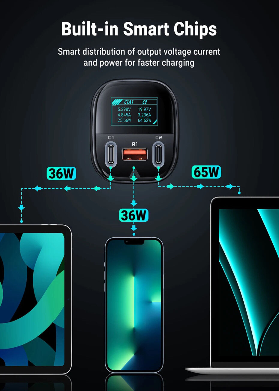 ACEFAST B5 101W 2C+A metal car charger with OLED smart display - Black