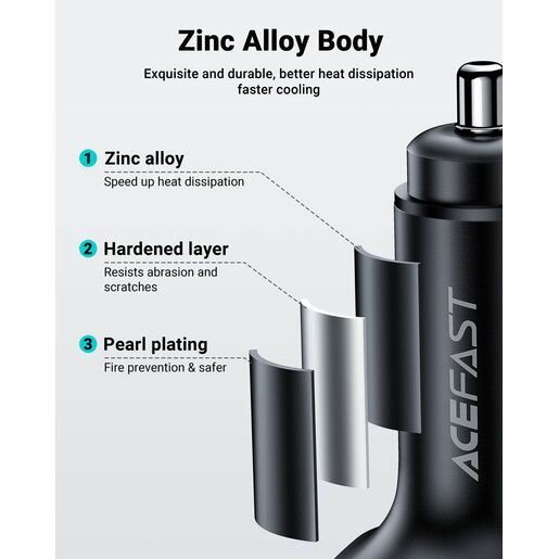 Автомобильное зарядное устройство / ACEFAST B5 101W 2C+A metal car charger / с умным OLED дисплеем