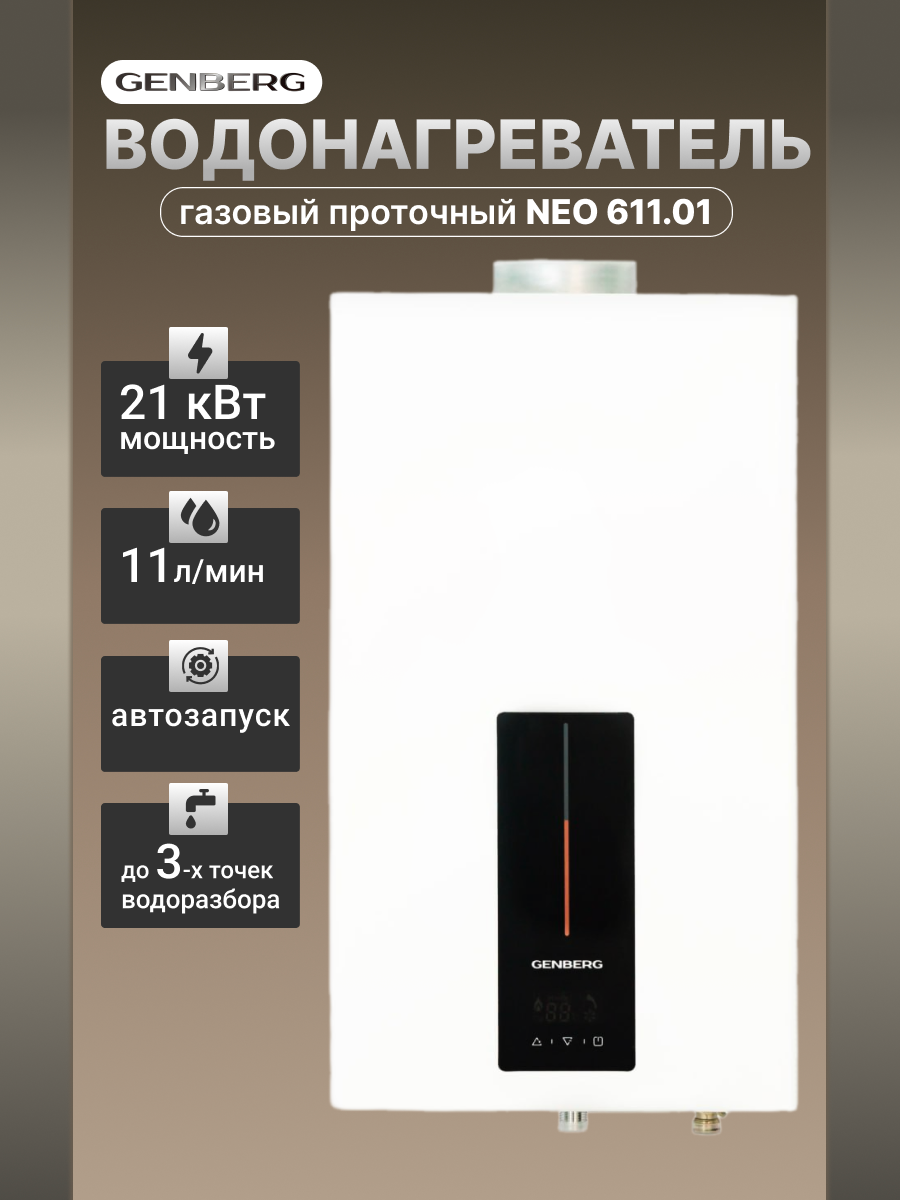 Купить Проточный газовый водонагреватель GENBERG 611.01 NЕО 11 л. / Газовая колонка
