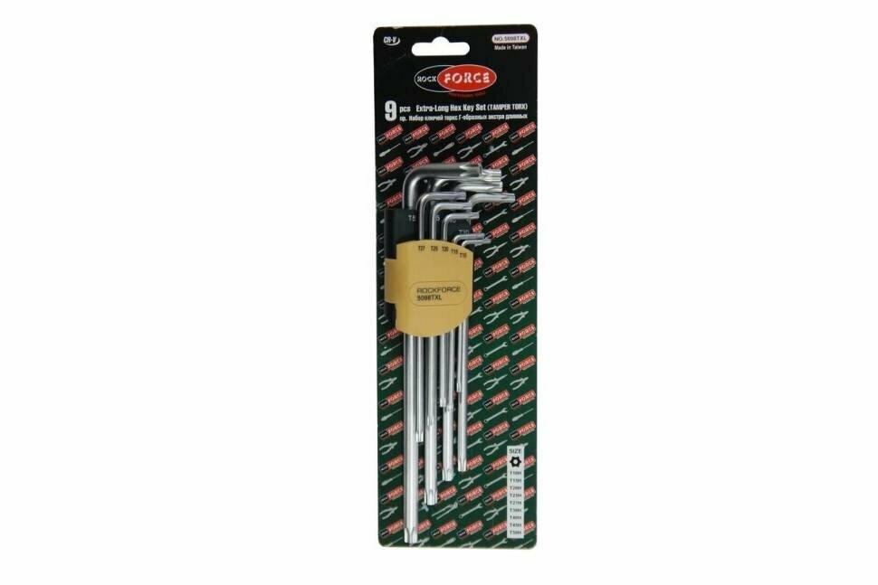 ROCK-FORCE RF5098TXL Набор кючей Г-образных, TORX, экстра динных, 9 пр: Т10Н, Т15Н, Т20Н, Т25Н,Т27Н, Т30Н, Т40Т, Т45Н,Т