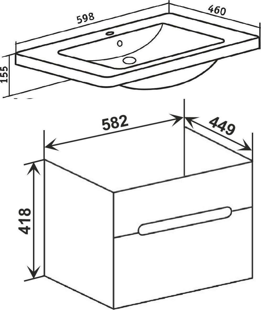 Тумба Руно Runo парма 60 /1 ящик/ 582х449х418 подвесная с умывальником Omega 60