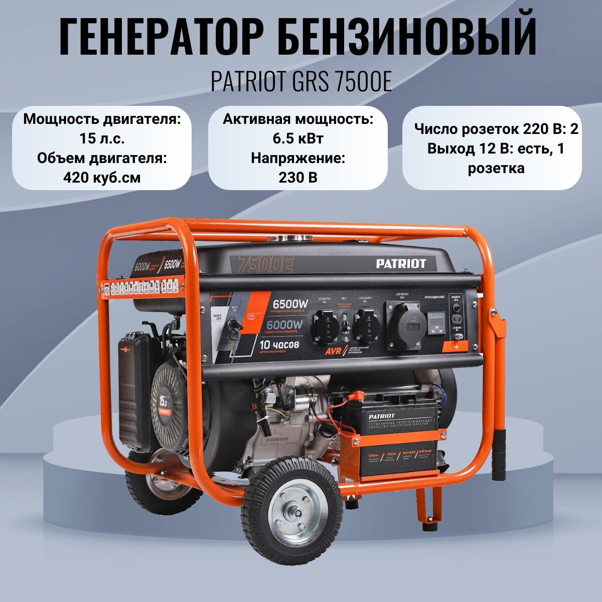 Генератор бензиновый PATRIOT GRS 7500 E, 6500Вт, электростартер, выход 12В