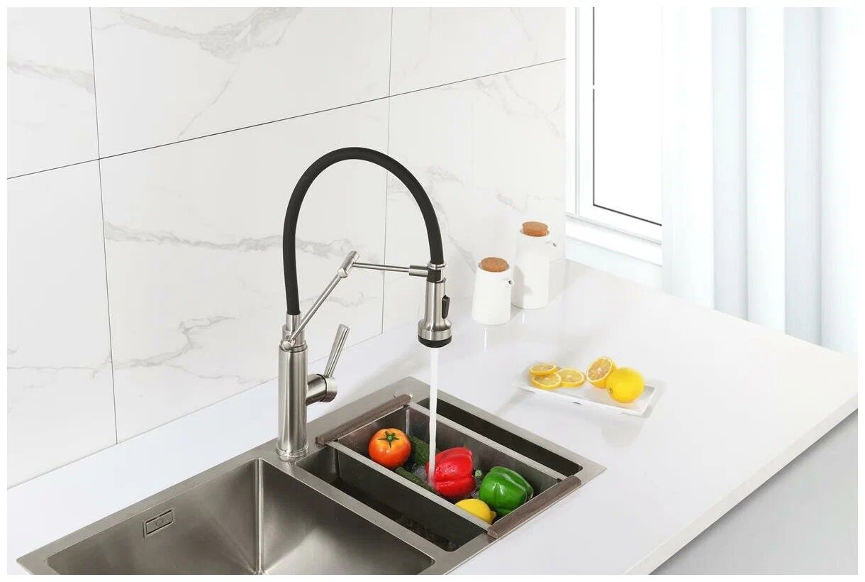 Смеситель для кухонной мойки Emar ЕСВ 7012 Black, с выдвижным изливом