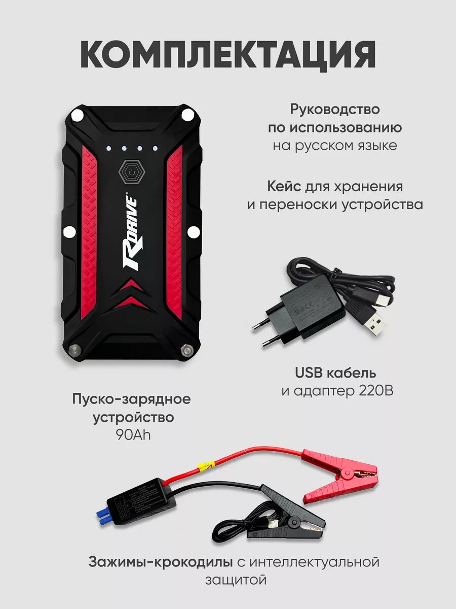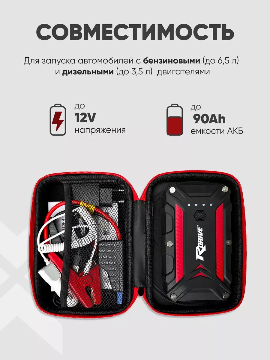 Пусковое зарядное устройство для автомобиля портативное RDRIVE StartEasy 90 Ah зарядка для акб бустер