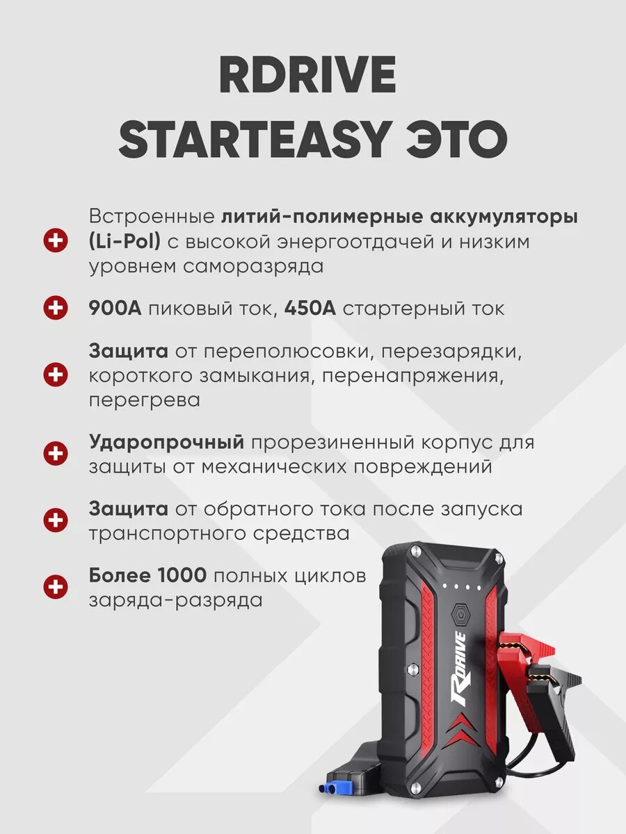 СохранитьПусковое зарядное устройство для автомобиля портативное RDRIVE StartEasy 90 Ah, зарядка бустер для акб интересное: