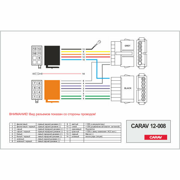 Разъем CARAV 12-008 / ISO - переходник для подключения автомагнитолы (питание + акустика) на автомобили CHRYSLER 1979-2001, DODGE 1978-2001, JEEP 1984-2001 / (select models)