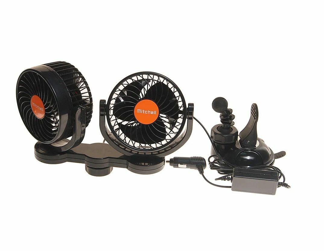 Вентилятор Mitchell 13 см, 24V, 13W, диммер, на присоске, двойной, с регулируемыми углами обдува 360°, black/orange