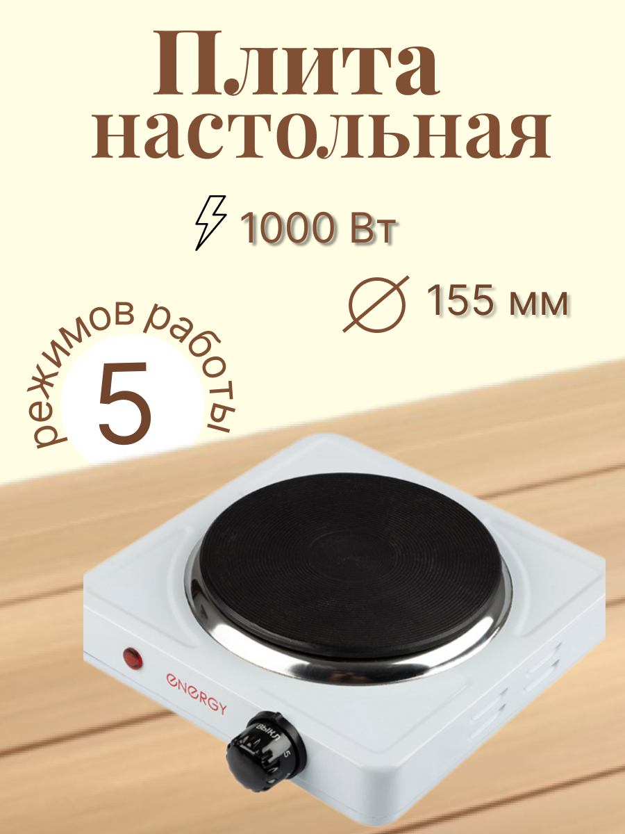 Купить Электроплитка Energy EN-901 белая 1-но конфорочная (закрытый ТЭН, чугун) 1.0 кВт, 155мм